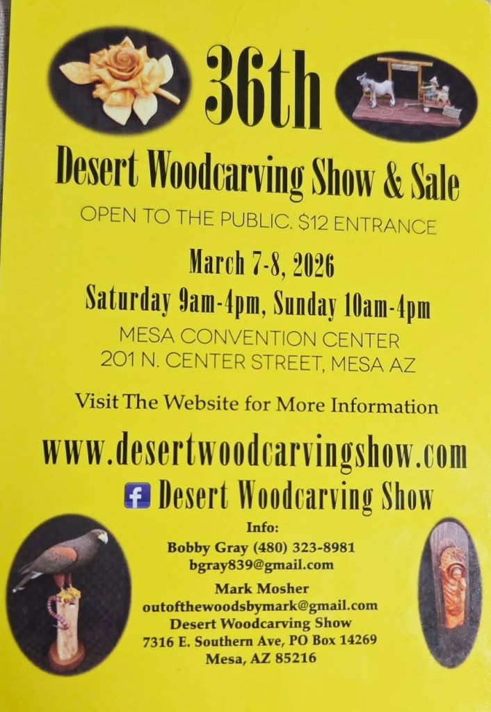 As the wood carving show schedule begins to kick into gear I want to extend an invitation to anyone who’s carving club is planning a show this year to submit your show information so I can promote it in Wood Chip Chatter. Copies of your show announcement flyers are greatly appreciated. Send to carverbobk@woodchipchatter.com or rwkoz51@gmail.com