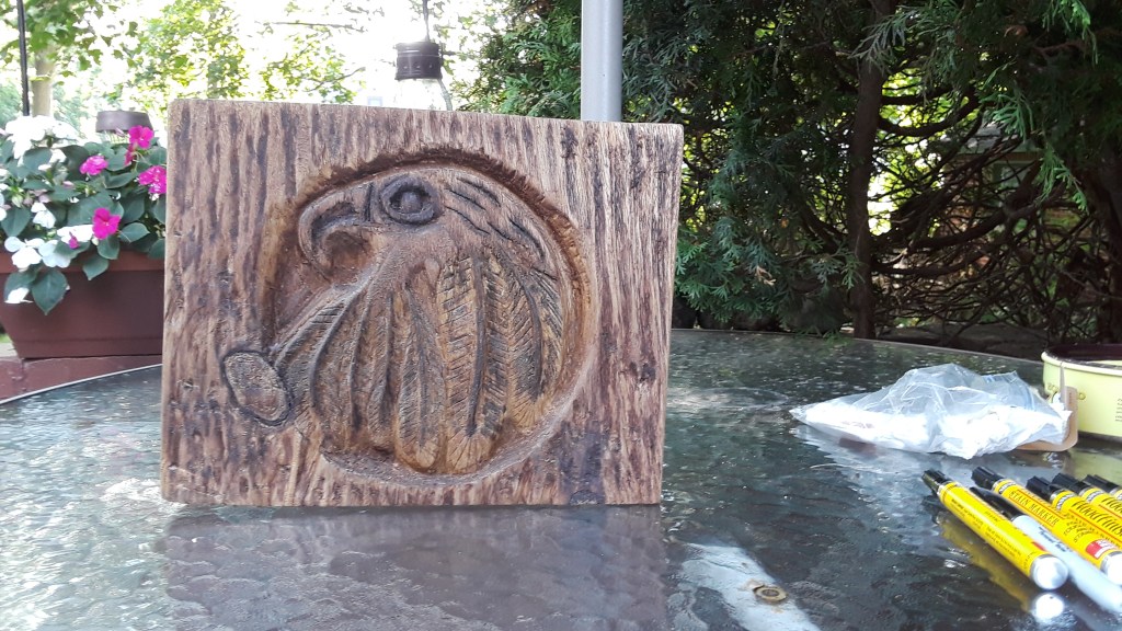 Thank you so much for the photo, Jim. That’s amazing work! I like how you carved the feathers. What type of wood is that?