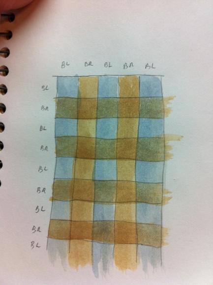 Now I do the horizontal lines of brown and you can see that the second coat over the intersections makes those squares darker.