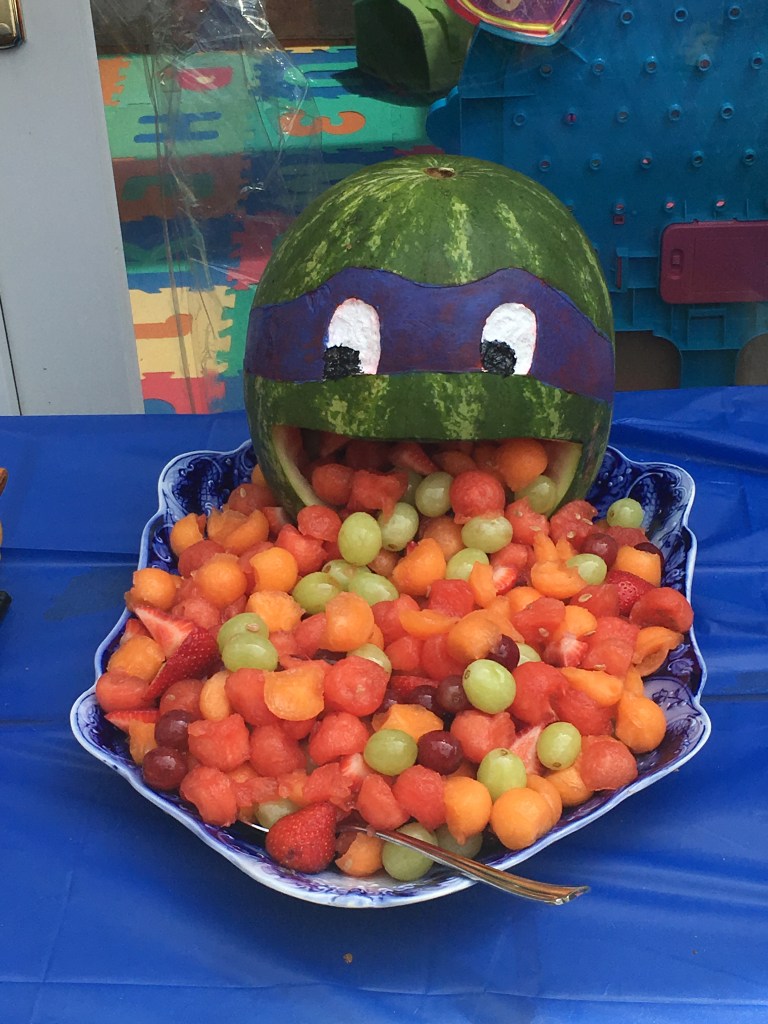 Here is a photo of one of the very first watermelons I ever carved. It was done five years ago for my grandson’s 4th birthday party…the party theme was Teenage Mutant Ninja Turtles. It was a last minute request so this was just something I whipped up.