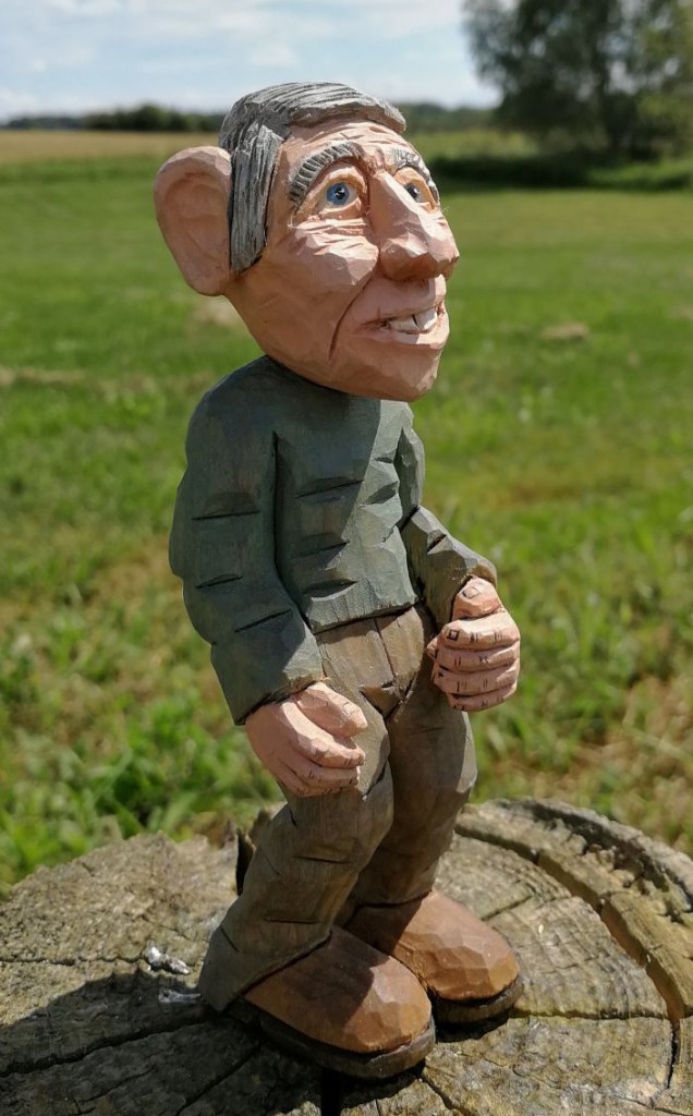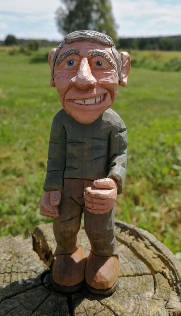 Our first entry to the “Carver’s Corner” this week comes from my friend, Vern Freer of Ontario, Canada who sent in some photos of “Gerry”, his hipster caricature he carved. Vern wrote: