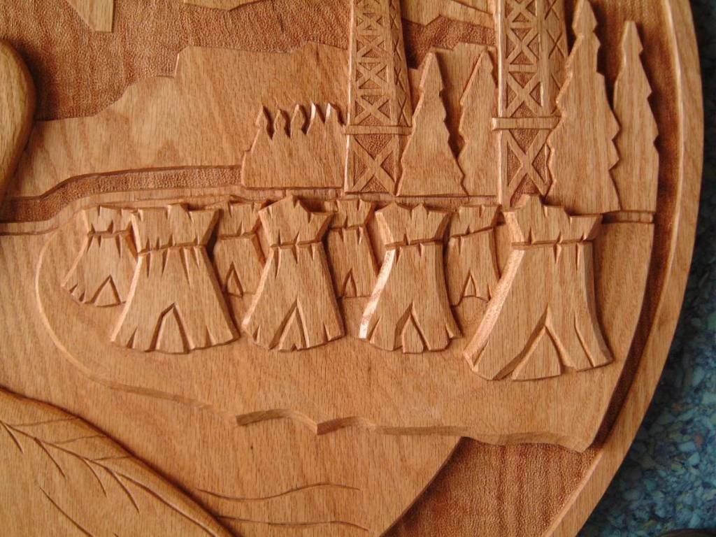 Relief carving can be described as “carving pictures in wood”. The process of relief carving involves removing wood from a flat wood panel in such a way that an object appears to rise out of the wood. Relief carving begins with a design idea, usually put to paper in the form of a master pattern which is then transferred to the wood surface. Most relief carving is done with hand tools chisels and gouges which often require a mallet to drive them through the wood.