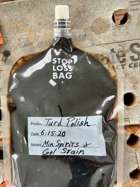 A lot of woodworkers mix up their own wiping varnish by combining varnish with mineral spirits and I’ve used these bags for storing an antiquing medium made from a mixture of wood stain and mineral spirits. They work fine, no leaks or problems with the mineral spirits eating through the plastic. However – Stay away from paint thinner and lacquer thinner because the manufacturer warns against using them with the Stop Loss Bags.