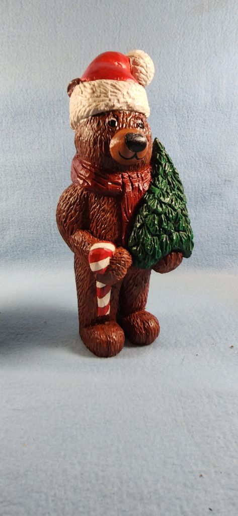 “so I 1st carved this bear over 10 years ago , then decided idea to carve it again for the family Christmas yanke swap ( of course I had to carve a new one for myself)