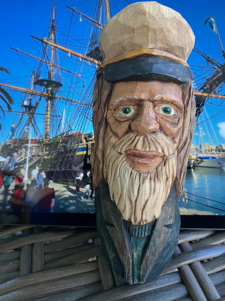 My good friend, Dean Stewart also submitted a photo of a terrific sea captain bust he recently carved following an Alex Lacasse tutorial. Dean writes: