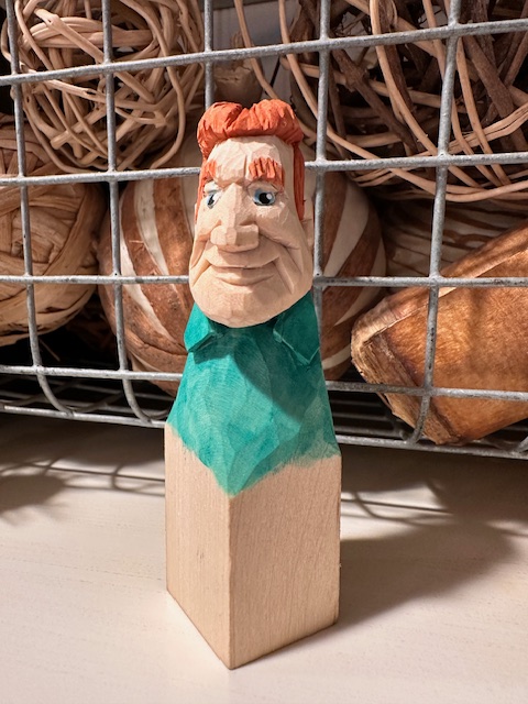 Here is a recent carve of mine. I’d appreciate some professional feedback on it. It is based on a tutorial by Alec Lacasse but the eyes are all mine. Carved in 2x2 basswood, sealed either mineral oil, painted with acrylics. Finally antiqued with burnt umber oil paint and sealed with Howard’s feed and wax.