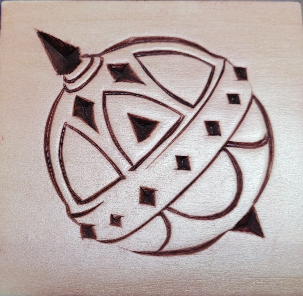 The fourth piece was finished a different way, but used the same Mahogany Gel Stain. After spraying it with sealer, I use a brayer (rubber roller used in printmaking) to apply a thin coat of stain to the piece, which still allows the grain to show through, but adds a dark finish to the surface, allowing the carving to stand out a different way. This was the finish used on the 10 fridge magnets.
