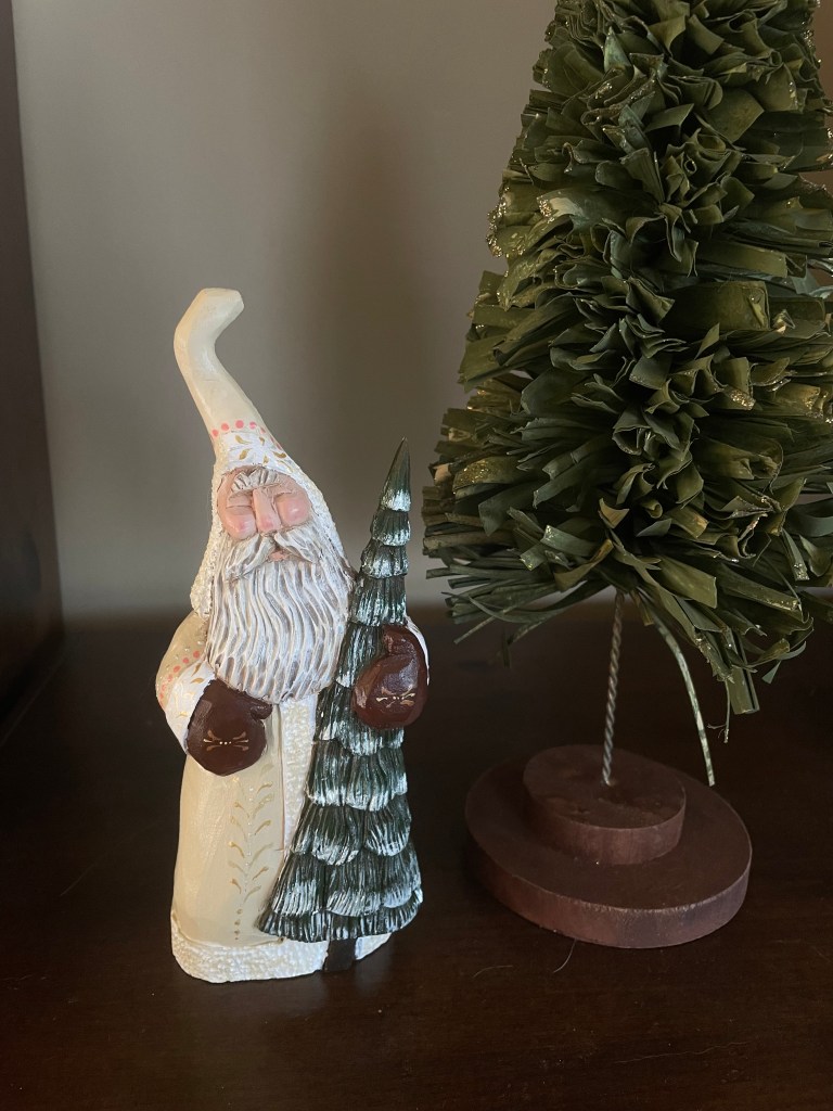 The first picture I attached is a blacksmith I carved this year.It is made of several pieces, with a separate head, hammer, horseshoes, anvil and stand. He was a lot of fun to carve,