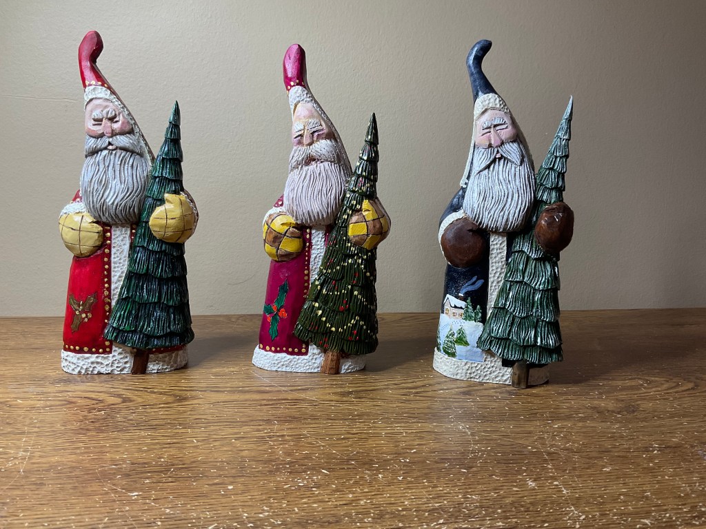 My good friend, Wayne Arrowsmith sent in some photos of the great Santas he carved and his family members painted. Wayne writes: