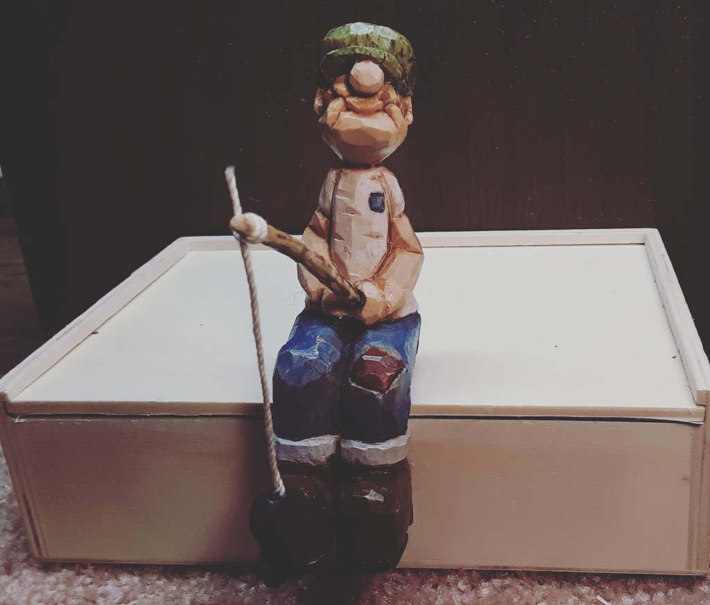 Perhaps on your next one you might want to try carving more detail into the seagull…like carve in the wings and some of the feathers, particularly on the tail. Eyes are always hard to do and although your fisherman’s eyes look good the eye lids don’t match. They should both be the same size and cover more of the eyes, from side to side.